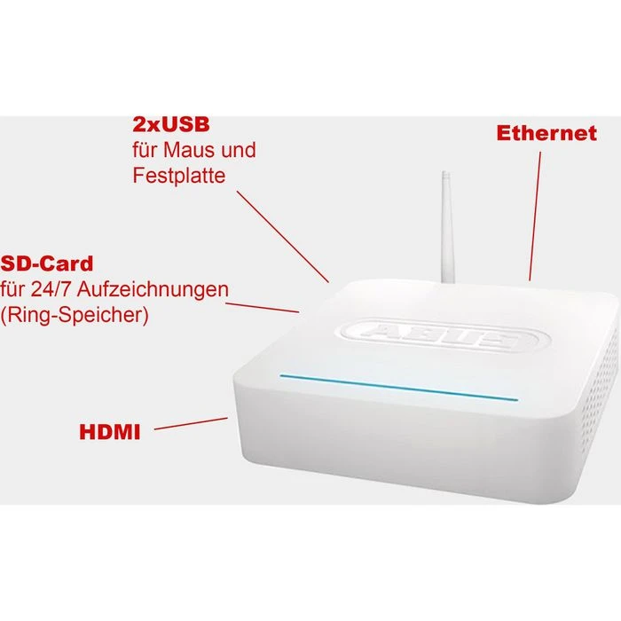Lieferung: inkl. Aufnahme-Rekorder inkl. 8 GB microSD, Netzteile, Netzwerkkabel, USB-Maus, HDMI-Kabel, Wandhalter, Montagematerial