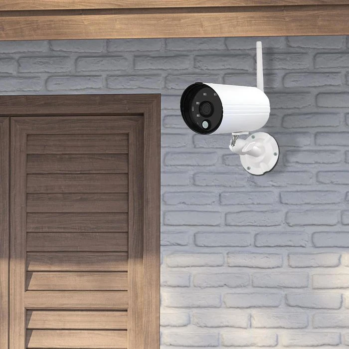 sonstiges: Datenübertragung zwischen Kamera und Rekorder per WLAN, Rekorder mit microSD-Speicherkartenslot, zusätzlich mittels USB-Anschluss und externe Festblatte auf 2 TB Speicher erweiterbar, Kamera mit wettergeschütztem Gehäuse (IP66), Push-Benachrichtigungen auf’s Smartphone, automatische Aufzeichnung bei Bewegungserkennung, zeitgesteuerte Aufnahmen, Zugriff per App