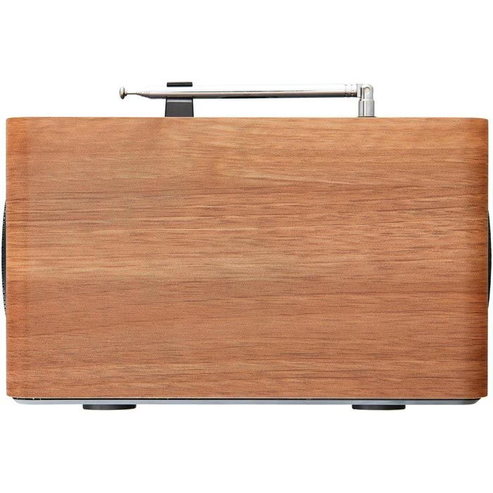 sonstiges: Senioren-Modus für eingeschränkte Bedienung (nur Ein- und Ausschalten, Lautstärke regeln, Favoriten wählen), kabelloses Streaming per Bluetooth, dimmbares 4″ LC-Display, Equalizer, Gehäuse in Holzoptik