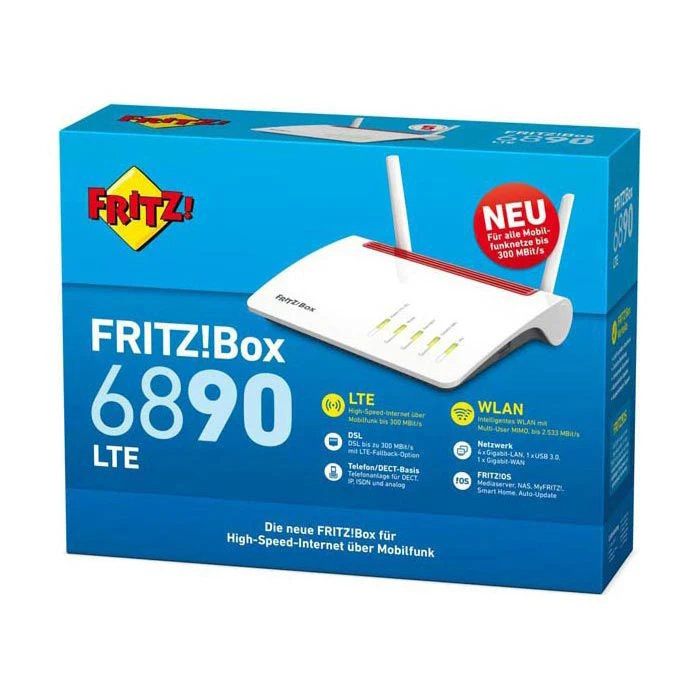 Netzwerk-Anschluss: 1x RJ45 DSL / VDSL, 1x RJ45 Gigabit-LAN/WAN, 4x RJ45 Gigabit-LAN, 1x USB 3.0 für Zubehör