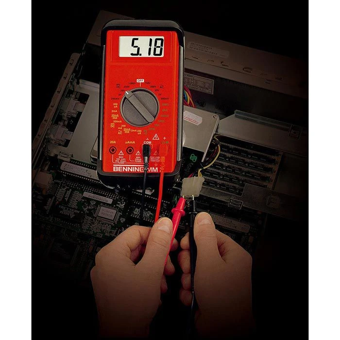 Lieferung: inkl. Messleitungen (1,4 m), Gummi-Schutzrahmen, Schutztasche, Batterien