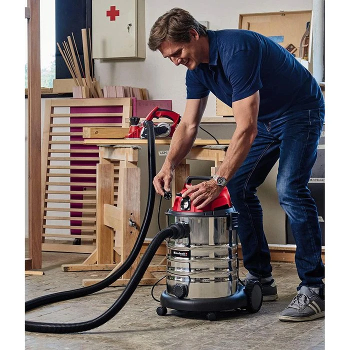 Lieferung: inkl. 2,5m Plastiksaugschlauch, zweiteiliges Verlängerungsrohr, Kombidüse für Teppich- und Glattböden, Fugendüse, Schaumstofffilter, Patronenfilter