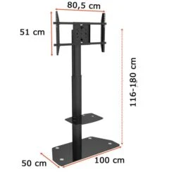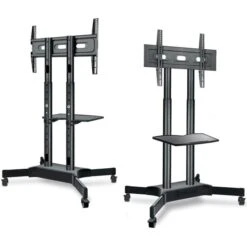 Onkron TV-Ständer TS1351-BLK, Schwarz, TV-Standfuß,32-65 Zoll, Mit Zwischenboden & Rollen