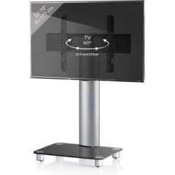 VCM TV-Ständer 17130 Tosal, Silber, Mattglas, TV-Standfuß, 32-70 Zoll, Mit Rollen