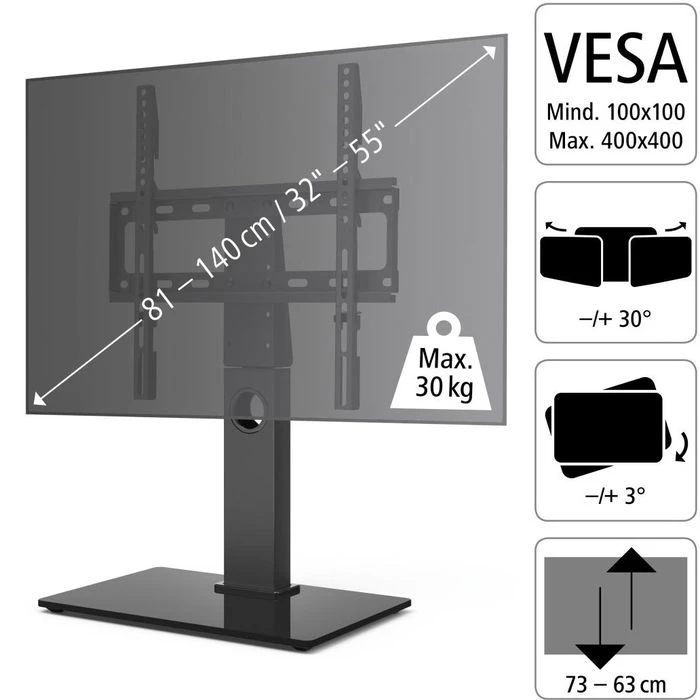sonstiges: mit versteckter Kabelführung für eine bessere Optik, ideal bei Beschädigung oder Verlust des original TV-Standfußes,l extrem stabile Grundplatte aus Sicherheitsglas für einen sicheren Stand, Anti-Rutsch-Gummifüße für einen perfekten Halt auf allen Oberflächen