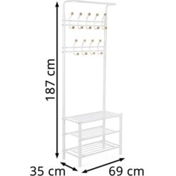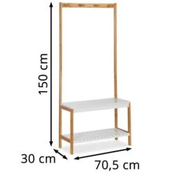 Relaxdays Garderobenständer Sandra, 10020565, Mit 2 Ablagen & 4 Haken, Metall, Hellbraun