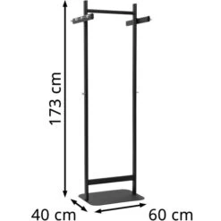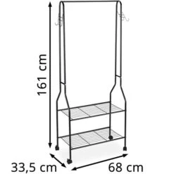 Relaxdays Garderobenständer 10027470, Mit Rollen, 2 Ablagen & 4 Haken, Metall, Schwarz