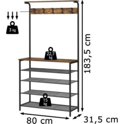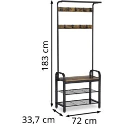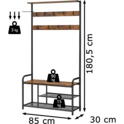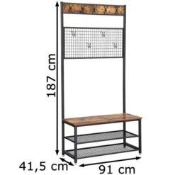 Vasagle Garderobenständer XHSR22BX, Vintage, Mit Schuhablage, Metall / Holz, Schwarz / Braun