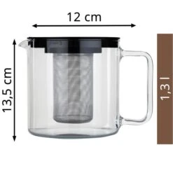 Böttcher-AG Tee-Kanne Glas / Kunststoff, Mit Edelstahl-Sieb, Transparent / Schwarz, 1,2 L