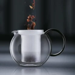 Bodum Tee-Kanne Assam 1844-01 Glas, Mit Kunststoff-Sieb, French Press, Schwarz, 1,0 L