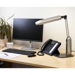 Hansa Schreibtischlampe Ecostar, Standfuß, Tischklemme, Silber