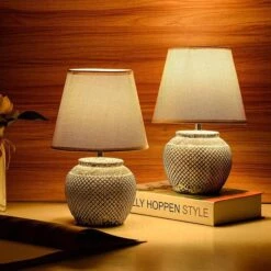 Schreibtischlampe BRUBAKER Grau, Holz-Chrom-Standfuß, 2 Stück