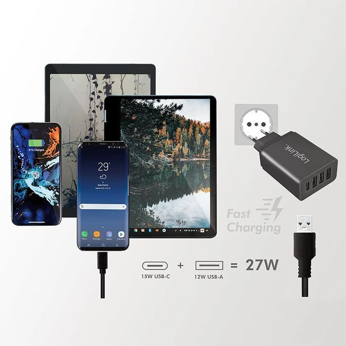 Ausgangsleistung: max. 27 W (15W USB-C / 12W USB-A)