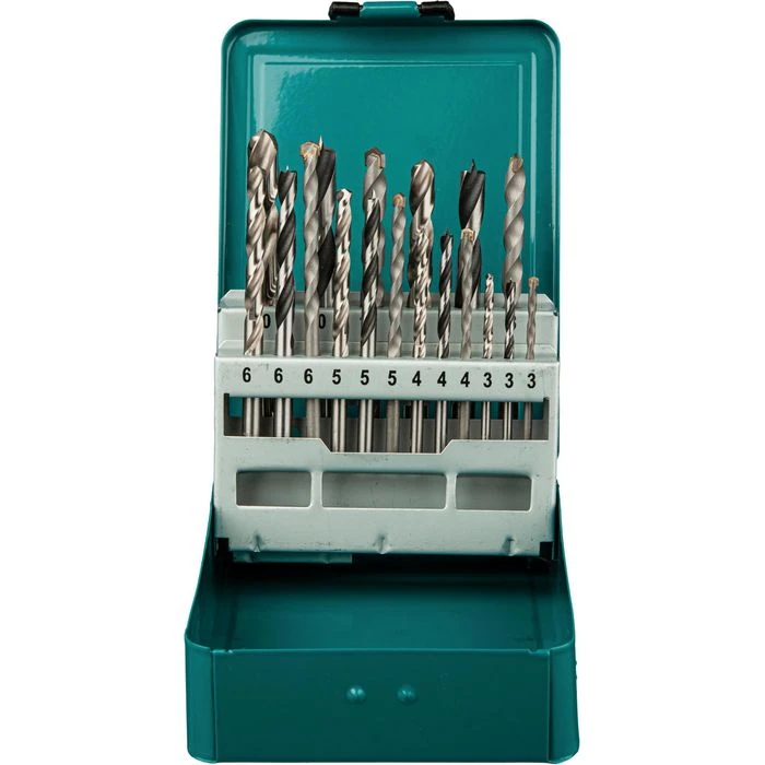 Lieferung: inkl. 18 Teilen (6x Metallbohrer 3-10 mm, 6x Holzbohrer 3-10 mm, 6x Steinbohrer 3-10 mm)