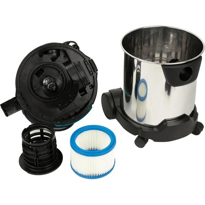 Lieferung: inkl. Bodendüse, Universaldüse, Fugendüse, 1 Filtersack, 1 Entsorgungssack, Filterelement, Saugschlauch 3,5m x 32mm, Saugrohrset gerade, Zubehörbox