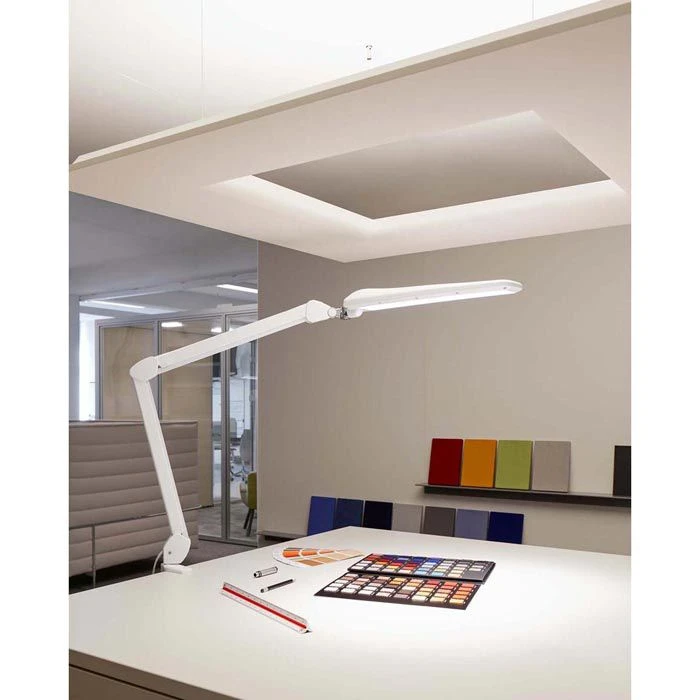 sonstiges: Metallarm 360° drehbar und 110° neigbar, dreidimensional verstellbarer Kopf, Bedienfeld am Leuchtenkopf, Blendschutz durch Streuscheibe, 1,7 m Netzkabel, Metallklemme zum Fixieren an Tischen bis zu einer Stärke von 63 mm