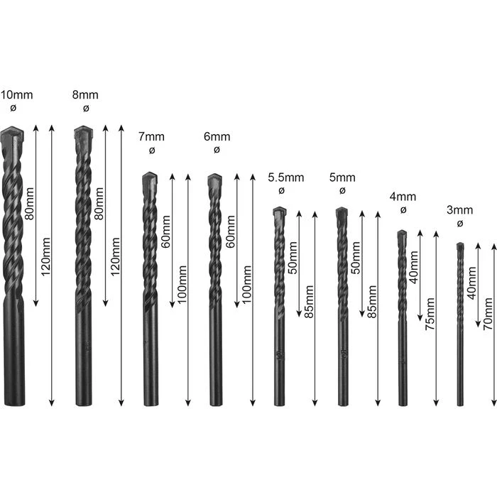 Bohr-Ø: 3 mm, 4 mm, 5 mm, 5,5 mm, 6 mm, 7 mm, 8 mm, 10 mm