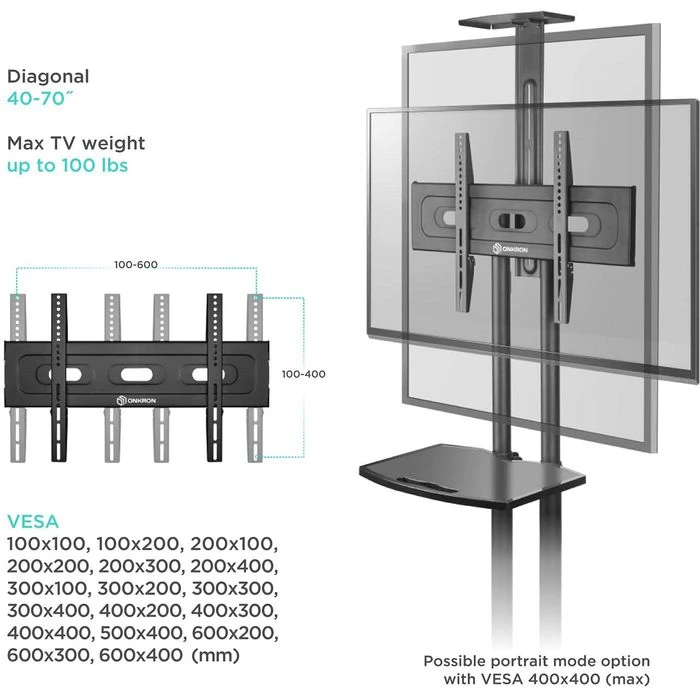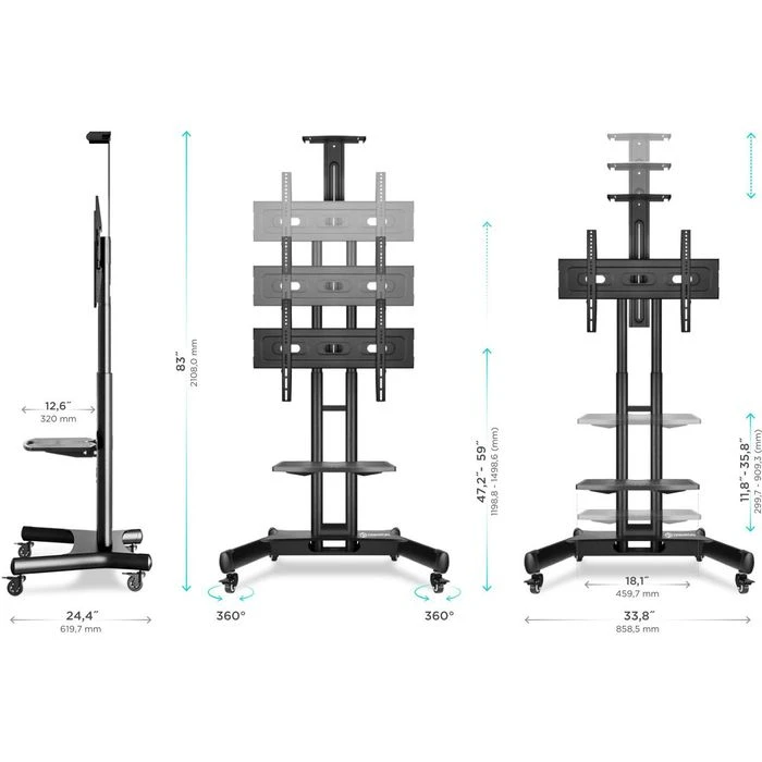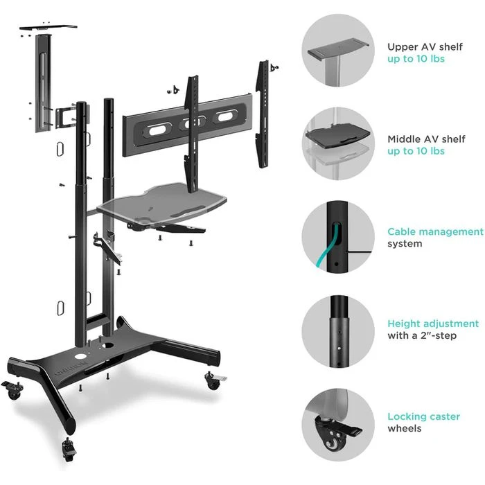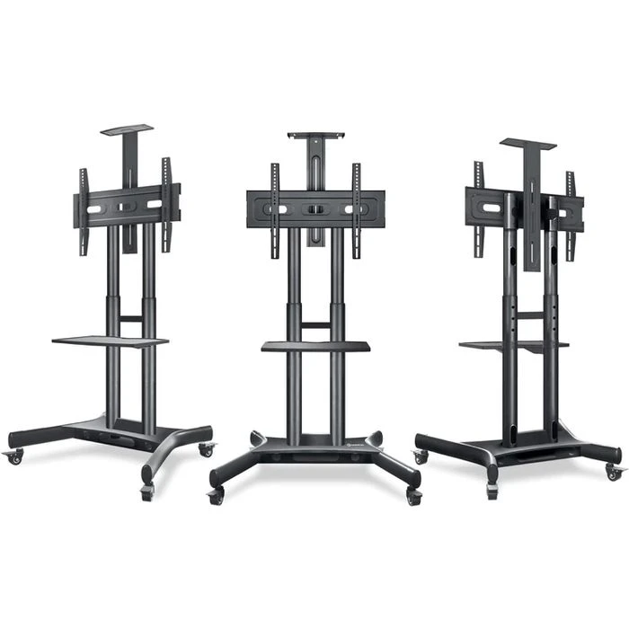 sonstiges: mit verdeckter Kabelführung an der Rückseite, höhenverstellbare Kamerahalterung, höhenverstellbare Ablage für AV-Geräte bis 4,5 kg (51 x 32 cm), feststellbare Laufrollen