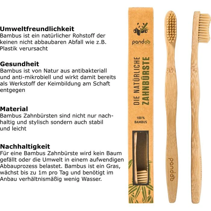 • Zahnbürstengriff sowie Verpackung zu 100% biologisch abbaubar