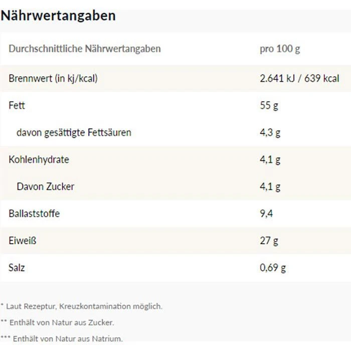 • Hoher Proteingehalt und reich an ungesättigten Fettsäuren