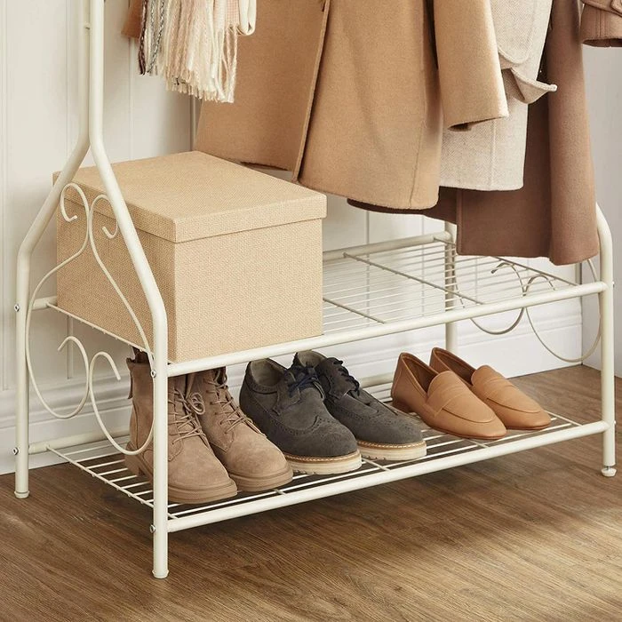 sonstiges: 2 Ablagen je 76 x 40 cm (BxT), jede Ablage bis 10 kg belastbar, pulverbeschichtetes Gestell, ausgestattet mit Nivellierfüßen