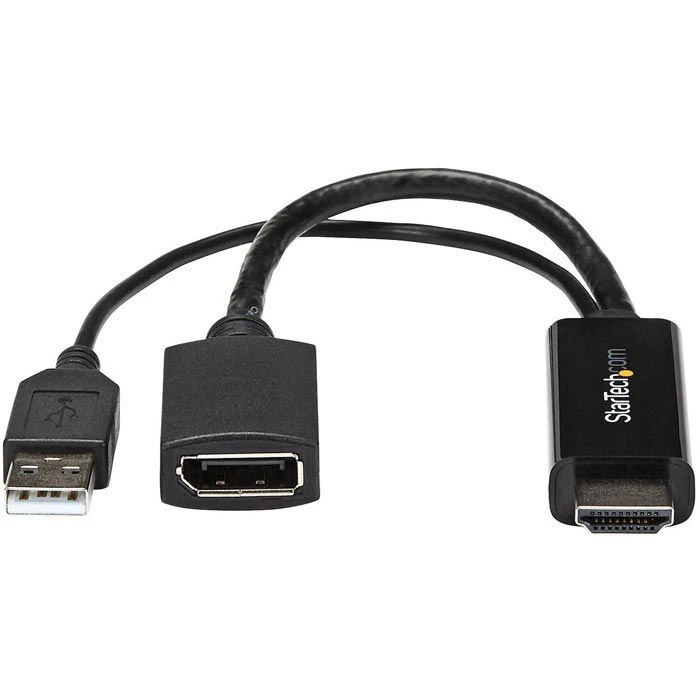 sonstiges: mit Stromversorgung via USB, Adapter dient dazu einen Computer mit HDMI-Anschluss mit einem Monitor, Beamer oder TV via DisplayPort-Anschluss zu verbinden, unterstützt Videoauflösungen von bis zu Ultra HD 4K (3840×2160 bei 30Hz) sowie 7.1 SurroundSound.