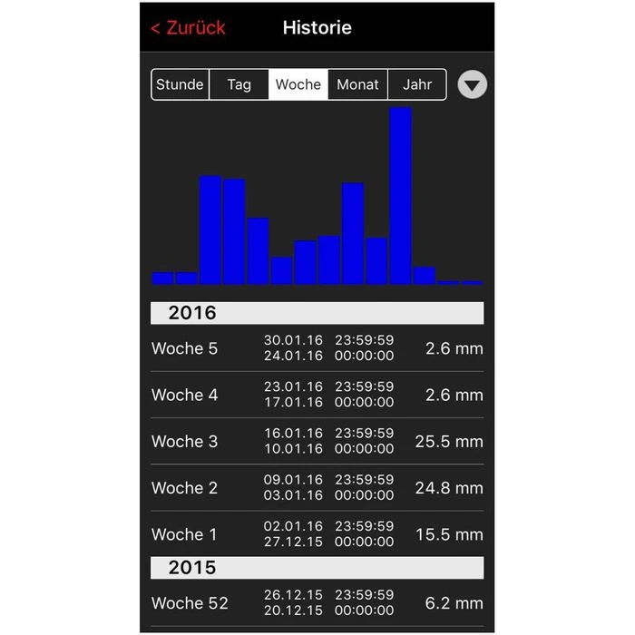 sonstiges: 90 Tage Mindestverfügbarkeit der Daten auf dem Server, Möglichkeiten zum Datenexport, Thermometer mit wasserdichtem Kabelfühler zur professionellen Temperatur-Überwachung von Kühlschränken, Aquarien, Teichen etc., Regenmesser zur Bestimmung der Anzahl an Regentagen, durchschnittlicher Regenmenge etc.