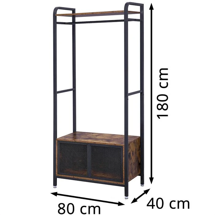 sonstiges: standsicheres Metallgestell mit Kleiderstange, Schuhschrank aus Spanplatte in rustikalem vintage-braun, mit 2 Gittertüren, Kleiderstange bis 20 kg belastbar, Schuhschank bis 60 kg belastbar