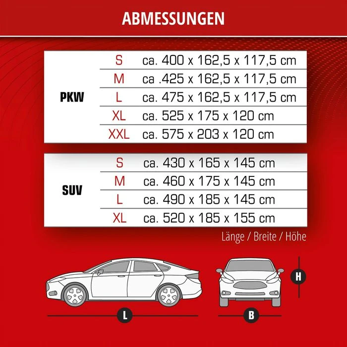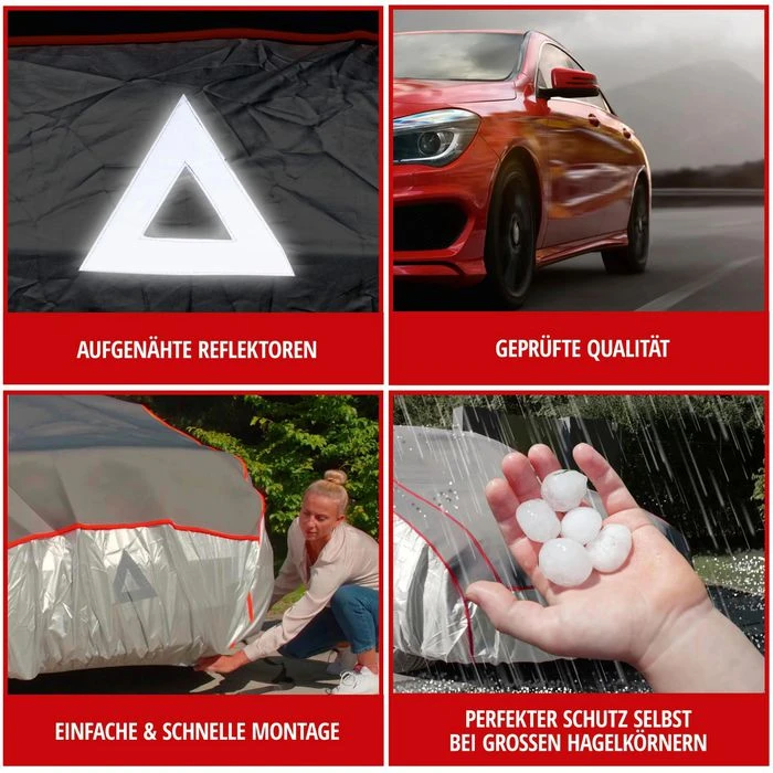 • Elastischer Nähte passen die Plane perfekt an die Form des Autos an