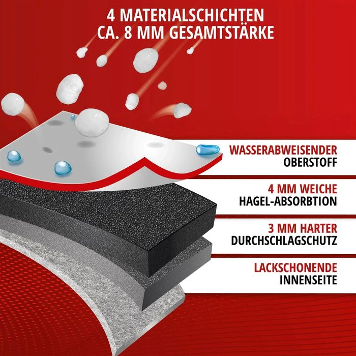 sonstiges: Unsere Hagelschutzplanen sind nicht UV-beständig. Direkte UV-Einstrahlung schadet der Plane und verringert die Lebensdauer der Abdeckung. Daher unbedingt nach Gebrauch wieder entfernen und nicht dauerhaft auf dem Fahrzeug lassen!