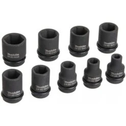 Makita Steckschlüssel D-41517, 9-teilig, 8 – 24mm Schlüsselweite – 38mm Länge, 1/2 Zoll