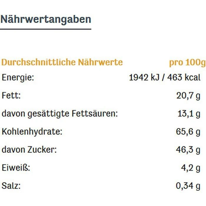 Kann auch Anteile von Haselnuss, Mandel und anderen Nüssen enthalten.